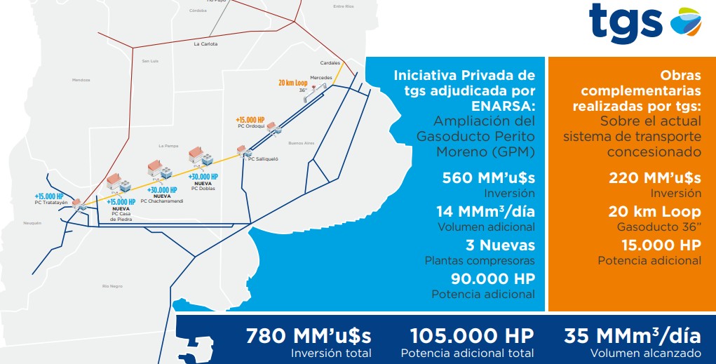A partir de dicha presentación, el Gobierno Nacional declaró de Interés Nacional la Iniciativa Privada presentada por tgs, delegando en la Secretaría de Energía el desarrollo del proceso. ENARSA, actuando por instrucción de la Secretaría de Energía, fue responsable de convocar a una Licitación Pública Nacional e Internacional para la ejecución y el financiamiento de las obras de ampliación, incluyendo la operación y el mantenimiento de toda la infraestructura del GPM.