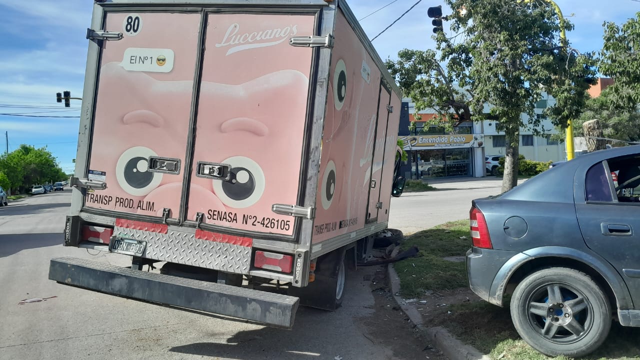 Anoche se produjo un accidente de tránsito en Av. Colón y Jujuy, entre un camión de la heladería Lucciano’s y un auto.