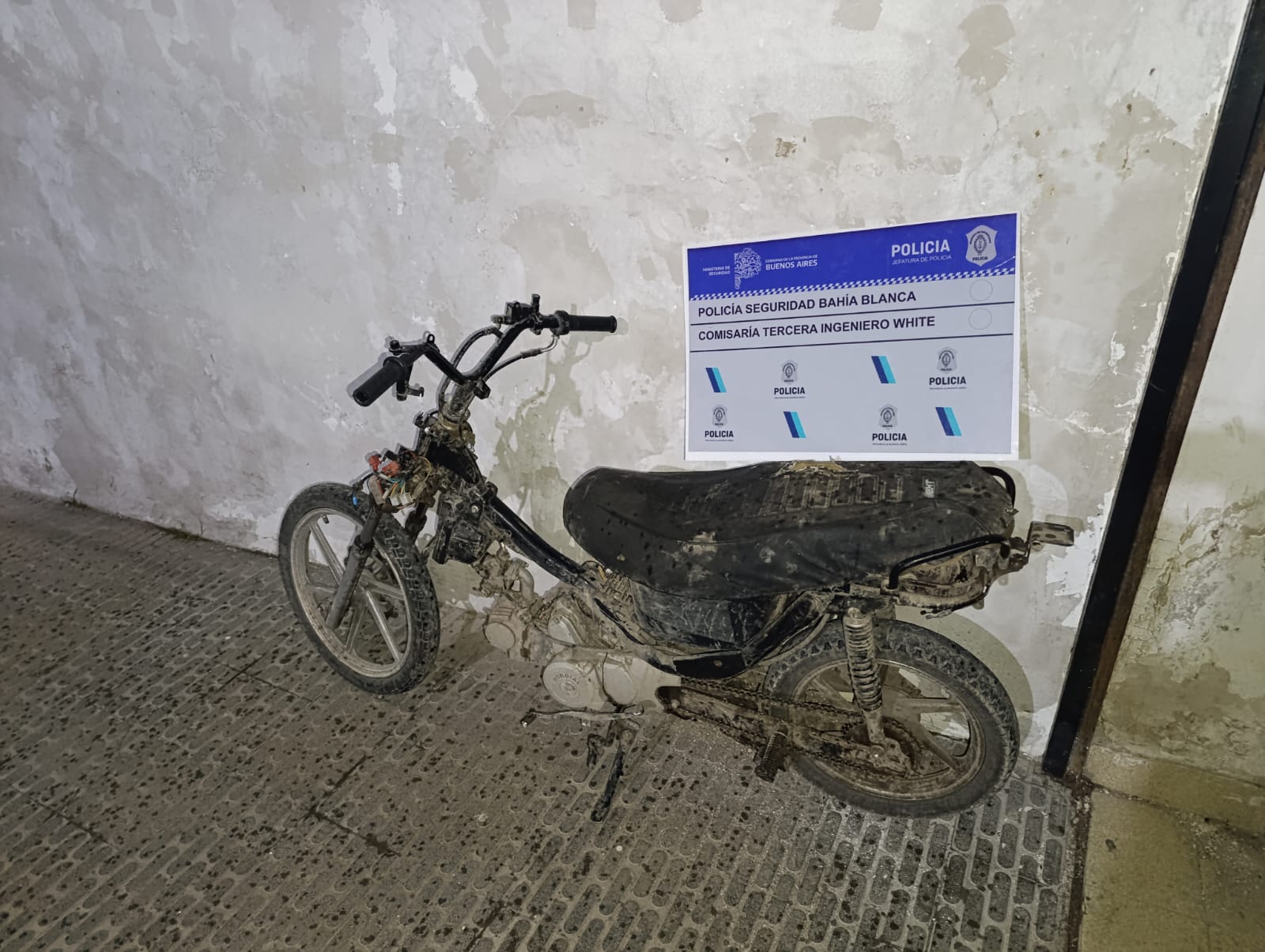 Al llegar patrulleros policiales se dispersan, dejando una de las motocicletas tirada en la calle, una Mondial tipo 110cc, sin patente y sin plásticos colocados.