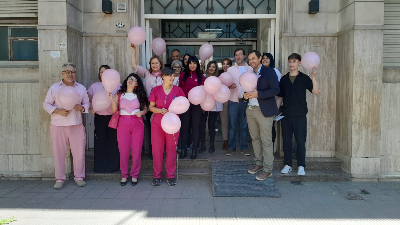 Al finalizar la conferencia, se realizó una suelta de globos en la vereda del hospital junto a sobrevivientes del cáncer de mama.