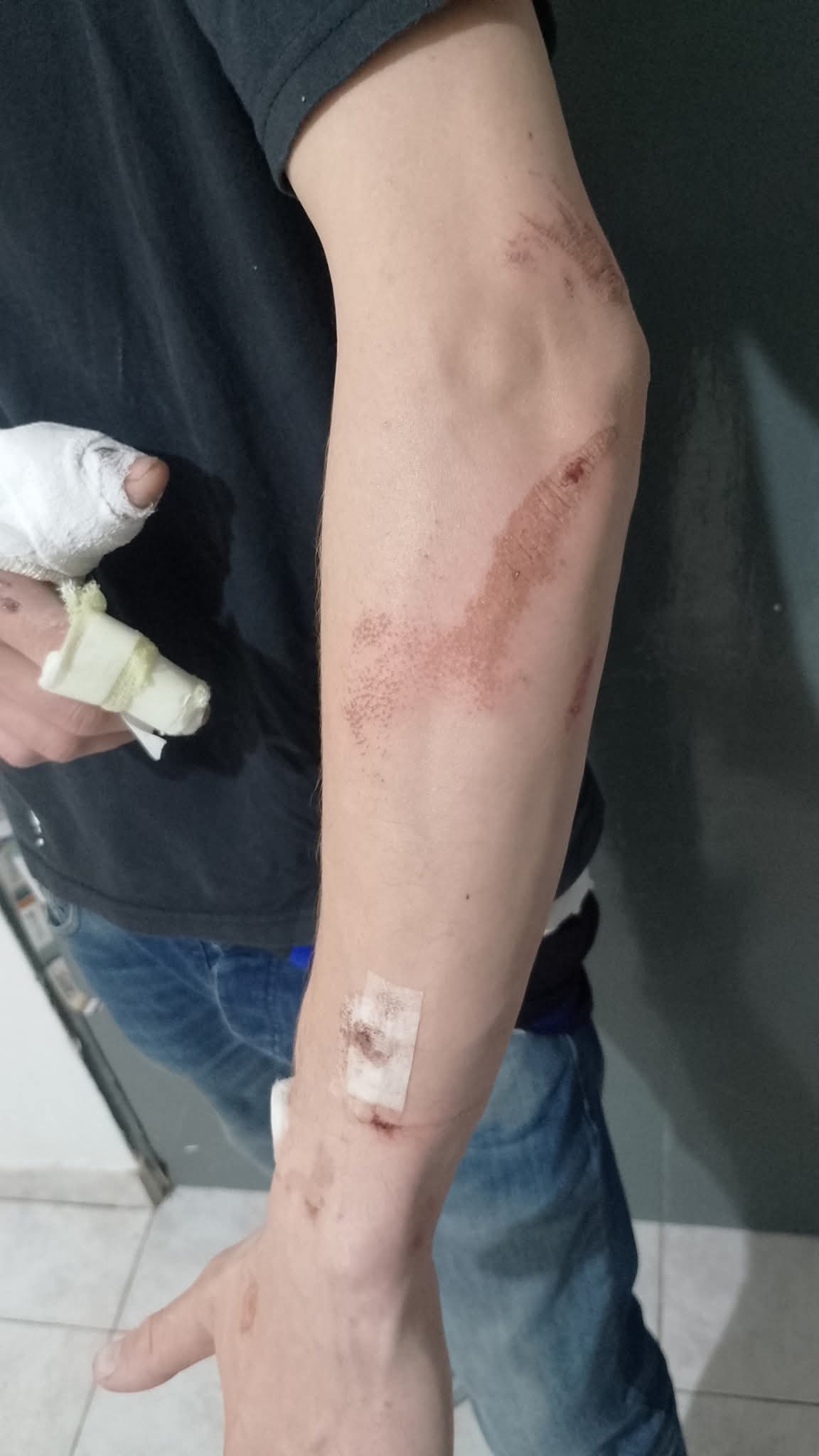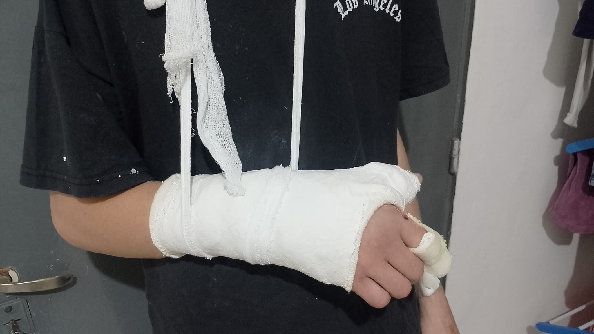 Afirmó que el joven está con un mes de reposo, tiene tres fracturas en la mano, internas, y sigue con medicación.