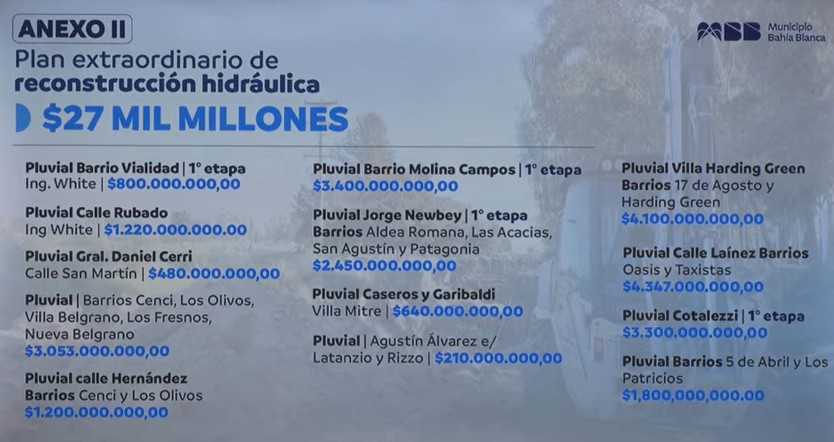 Habrá un anexo especial por 40 mil millones de pesos para obras que se realizarán como pavimentación, reencarpetado, iluminación, pluviales y espacios públicos arrasados durante la catástrofe.