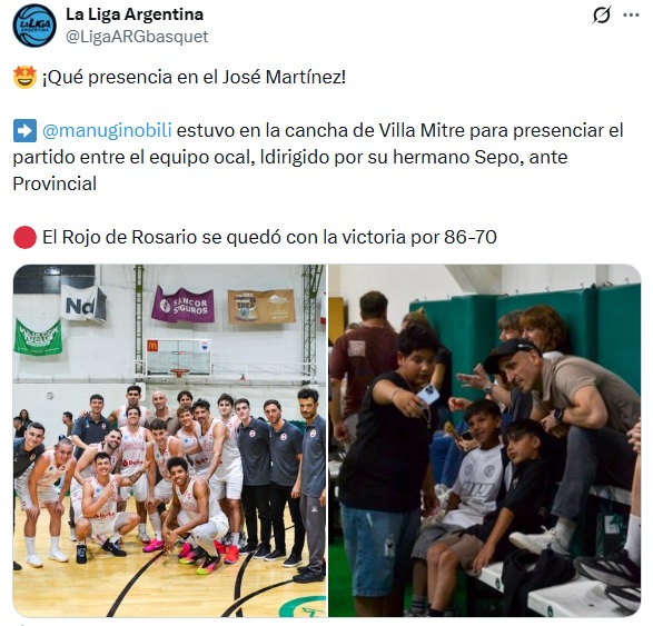 En el José Martínez, Provincial consolido su posición de líder de la Sur, al vencer a Villa Mitre por 86 a 70. Con un espectador de lujo se jugó el encuentro, en su visita a la ciudad y acompañando a su hermano, Manu Ginóbili dio el presente.