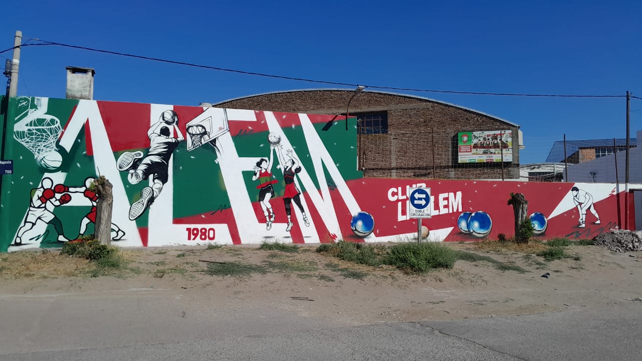 Contó además que la idea del mural es mostrar las actividades que tiene el club, que son bochas, básquet femenino y masculino, además de boxeo.