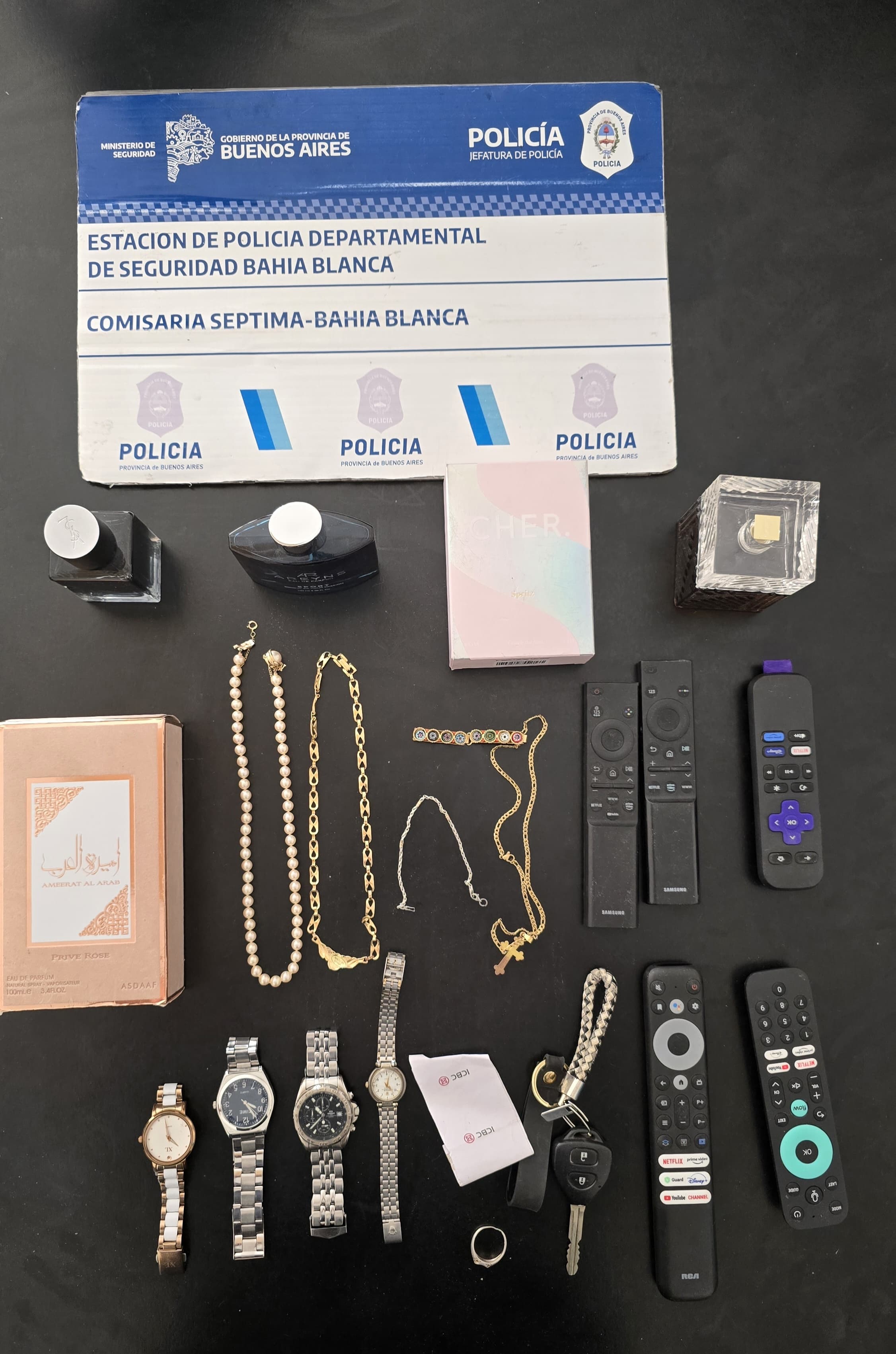 En el lugar se secuestró tres televisores led de distintas pulgadas, sustraídos en calle Florida al 1000, un sommier embalado con su colchón, un lavarropas automático carga frontal embalado, una cocina y un aire acondicionado también nuevos, perfumes árabes, joyas varias, relojes pulseras, dinero en efectivo por la suma de $ 92.800.