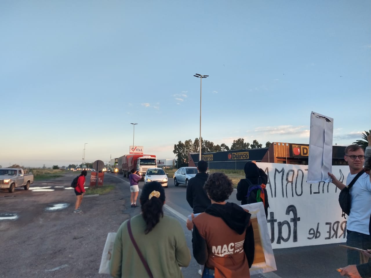 El mismo se lleva a cabo en Av. Colón y Ruta 3, donde se encuentran con pancartas y quema de cubiertas, perteneciendo a diferentes agrupaciones de Izquierda.
