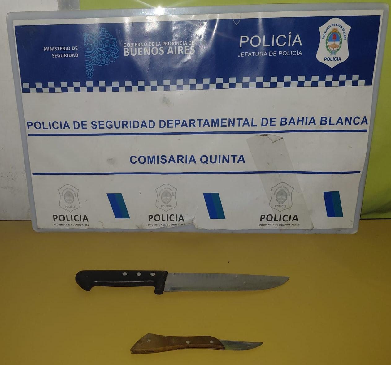 El imputado fue trasladado a la Comisaría Quinta, con intervención de la UFIJ N°15 del Departamento Judicial Bahía Blanca, acusado de Lesiones e infracción al artículo 189 bis del Código Penal.