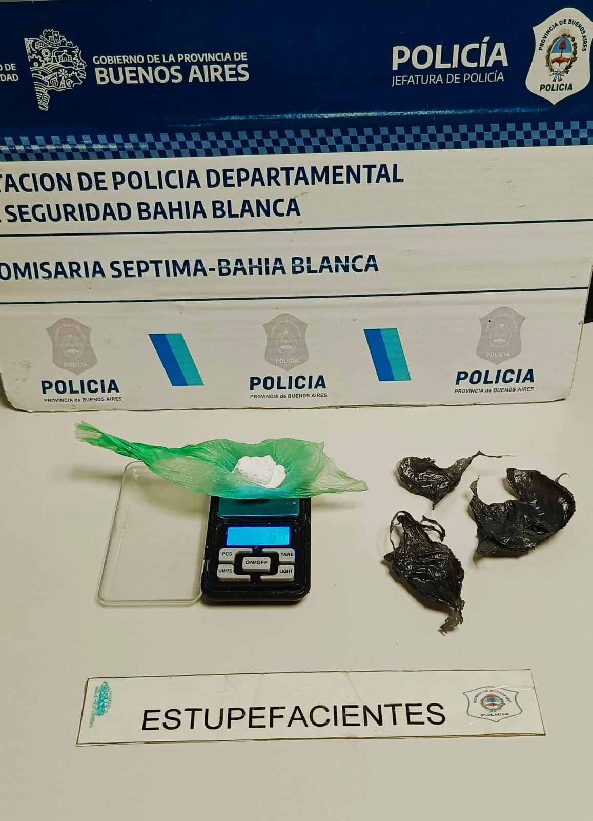 Además, siendo aprehendida por la Ley de Drogas, dado al secuestro en el habitáculo del rodado de 6,4 gramos de clorhidrato de cocaína y envoltorios de nylon varios para el fraccionamiento de estupefacientes.