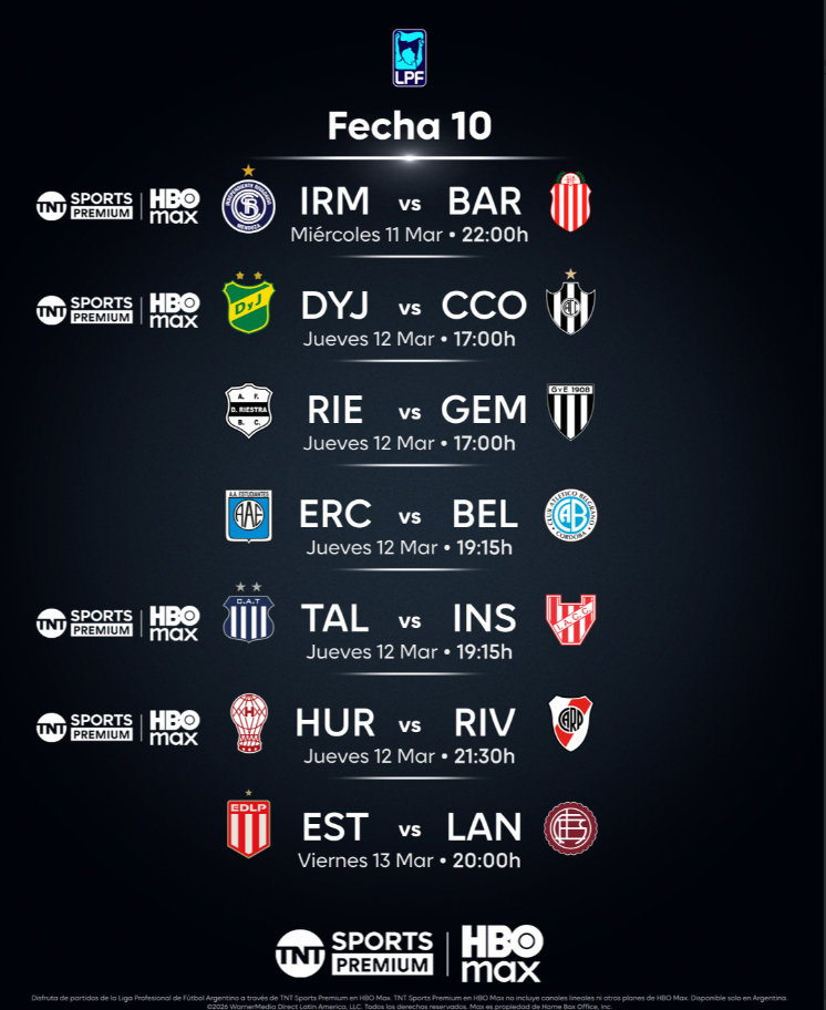 Fixture de la fecha 10 del Torneo Apertura 2026