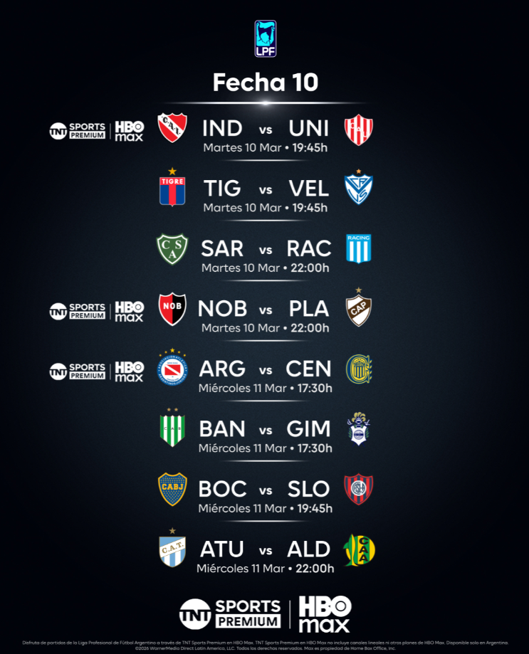 Después del paro que llevó a cabo la AFA, este martes se reanuda el fútbol argentino y la fecha 10 del Apertura 2026 abrirá con dos encuentros a las 19.45: Tigre vs. Vélez, el interzonal de la jornada, e Independiente vs. Unión. Más tarde, a las 22, será el turno de Newell’s-Platense y Sarmiento-Racing.