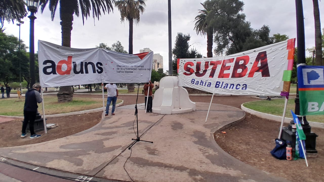 Desde esta mañana se está llevando a cabo un acto y movilización en la plaza Rivadavia con motivo del paro y manifestación de los docentes y no docentes de la ciudad, en pedido de la aplicación plena y urgente de la Ley de Financiamiento Universitario.