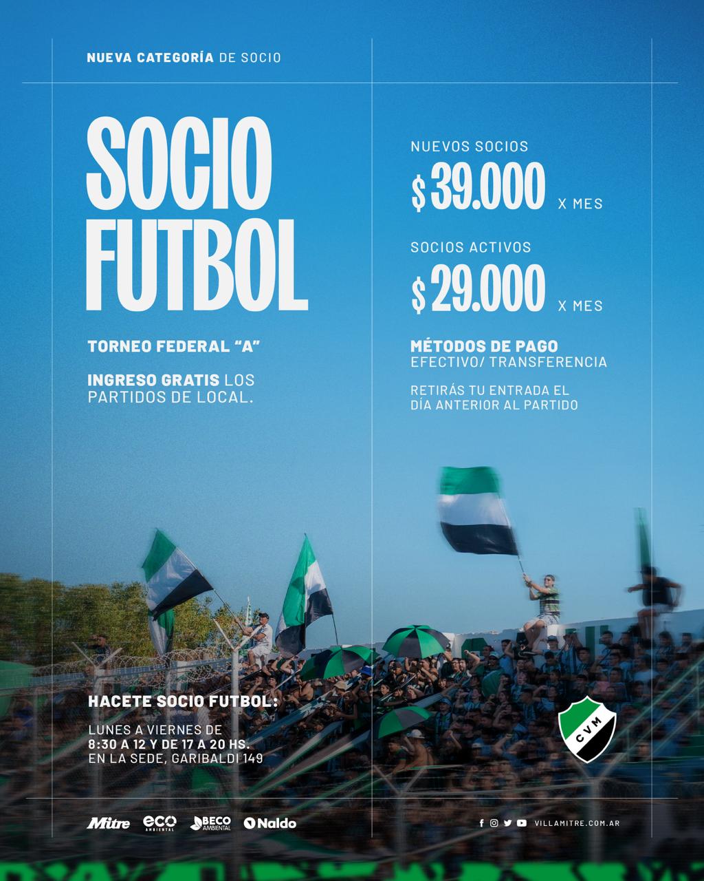 El club Villa Mitre lanzó una nueva campaña de socios con una nueva categoría de Socio Fútbol.